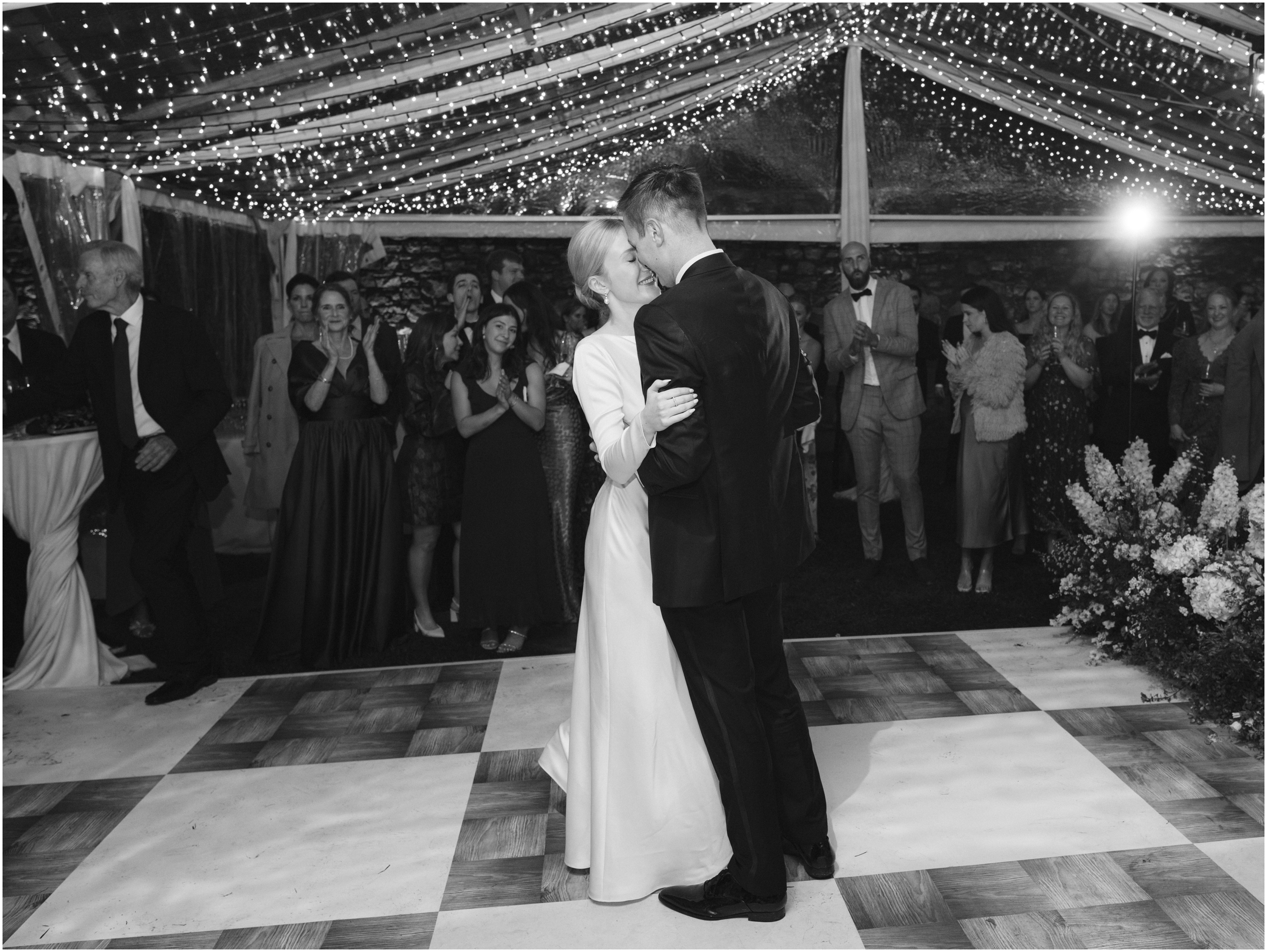 Amelia wore a custom lace wedding gown, timeless and delicate, perfectly suited to the old-world beauty of Florence. As the rain soaked the grounds and the day unfolded, it became clear: this was a wedding about joy, connection, and the unshakable spirit of celebration.